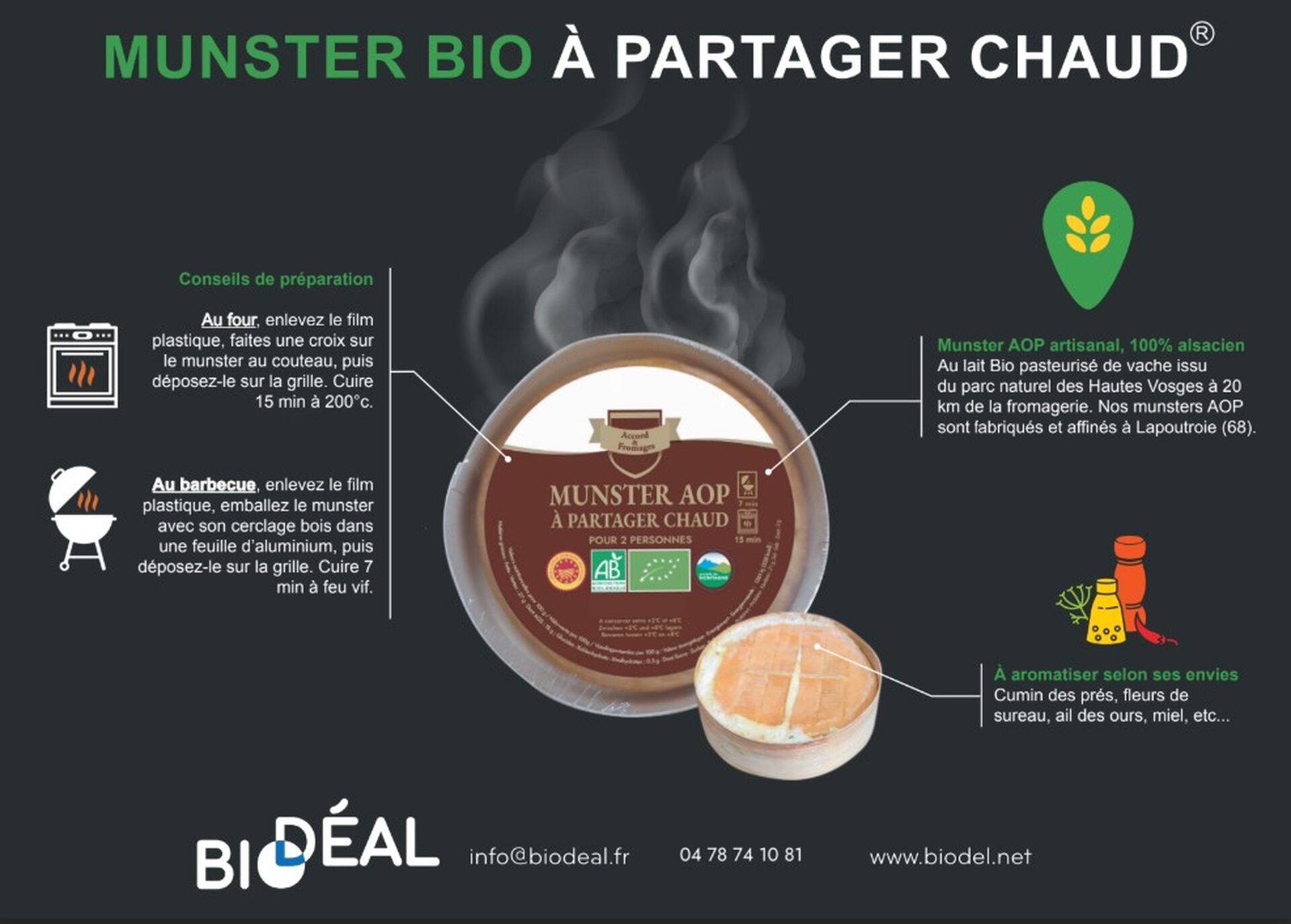 Nous sommes ravis de vous annoncer le lancement d’une nouveauté qui sent bon l’Alsace et la convivialité : le Munster AOP à faire fondre BIO 220 g, disponible à partir du 21 janvier 2026.